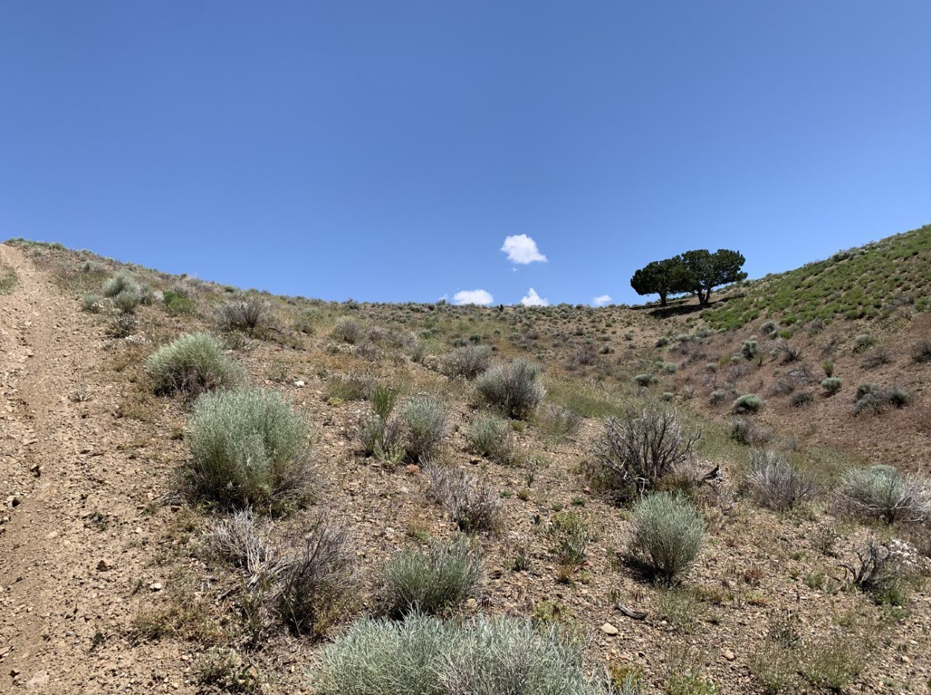 Terrain and Access: Rare trees on property sitting at the top of the hill, with sagebrush, grasses, and beautiful mountain views in all directions. Western border of the property is adjacent to public land.